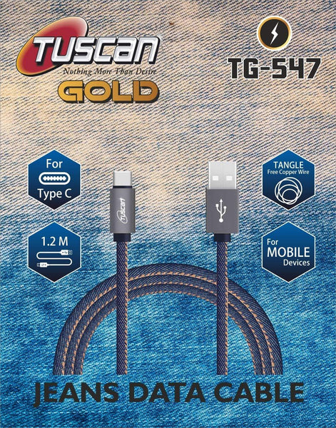 2.4A Type C Fast Charge and sync Data Transfer Cable 1 Meter Denim Coating Material