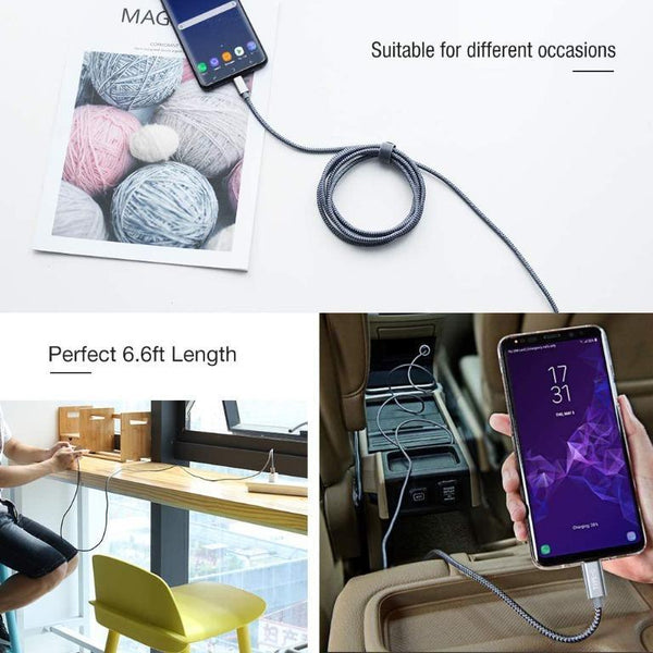 2.4A Type C Fast Charge and sync Data Transfer Cable 1 Meter Nylon Braided