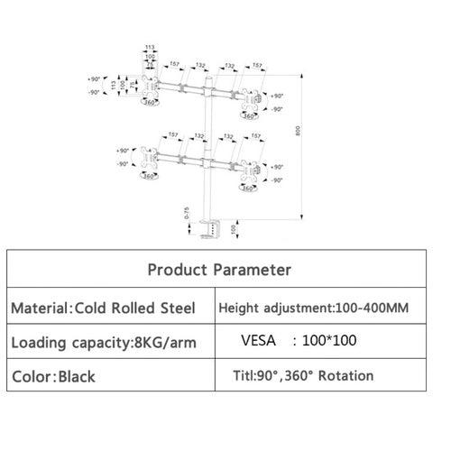 Quad Monitor Mount, 4 Monitor Stand for 13-27 inch Screens Monitor Arms & Stands