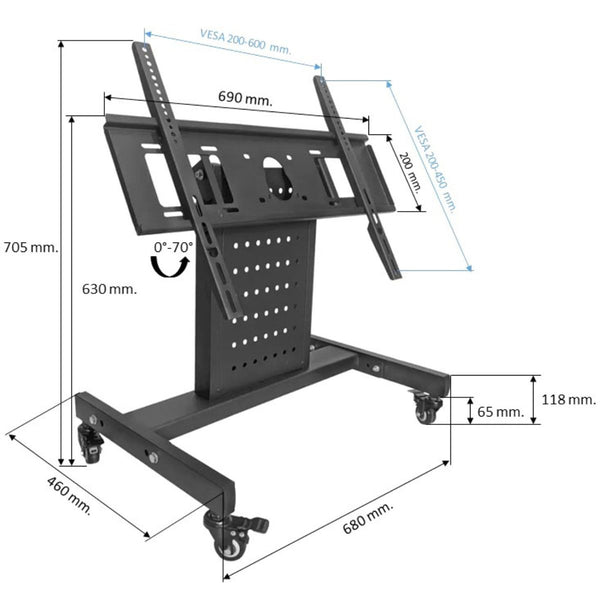Discover the ultimate mobile TV stand for 32-70 inch screens, perfect for conference rooms, stages, and more. Made from durable cold-rolled steel, it features a 90° tilt, 825 mm height adjustment, and supports up to 40kg. Ideal for versatile display needs.