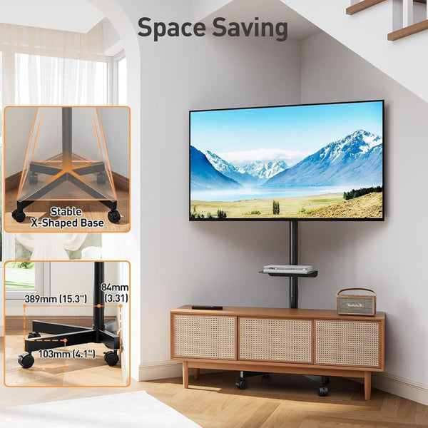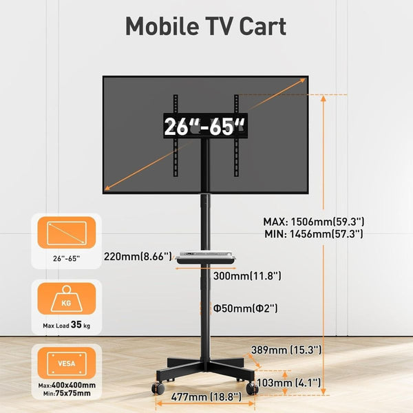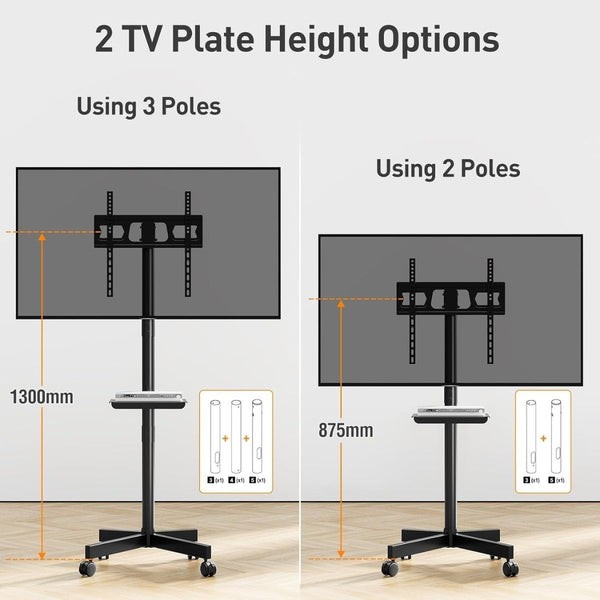 • Highly Compatible: convenient for moving your TV around at home or in the office, our TV stand meets your different needs. Effortlessly move your TV from the living room to the bedroom. Perfect for commercial use in shopping malls, offices, conference rooms, trade shows, hotels and more.