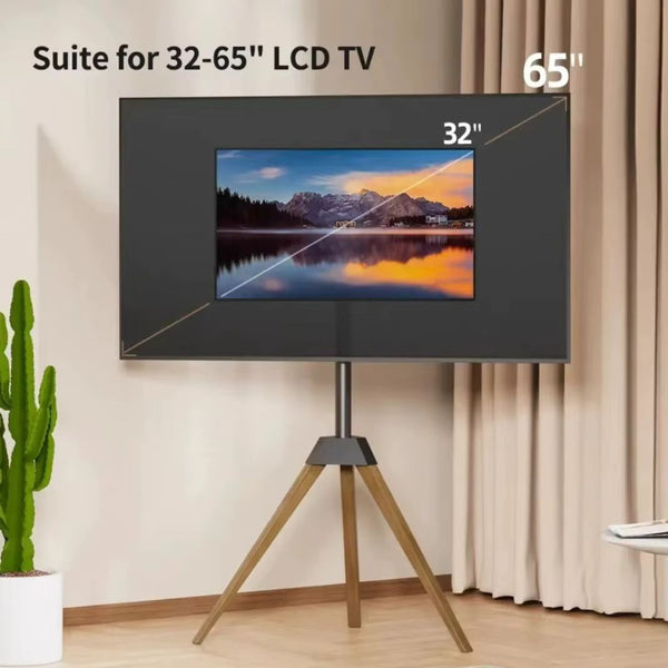 If you’re looking for a premium TV floor stand, tripod TV stand, wooden TV stand or portable TV mount, this is a reliable and elegant solution.Mount Type: Floor Standing Tripod TV Stand. TV Size Supported: 32" – 60". Maximum Load Capacity: 35 kg. VESA Compatibility: Up to 600 × 400 mm. Swivel Range: ±25°. Height Adjustment: Yes. Material: Steel + Wooden Legs.