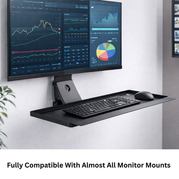 This Keyboard Tray is a smart, space-efficient accessory designed to enhance workstation ergonomics and productivity. Engineered for universal compatibility, it seamlessly integrates with almost all monitor mounts, making it an ideal add-on for office, commercial and professional setups.