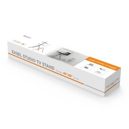 The Easel Studio TV Floor Stand is an innovative design that uses quality metal and traditional hardwood that fits beautifully into any décor. Sleek and elegant and user-friendly as well. Simplicity and convenience are at the heart of the stand assembly. Packaged for ecommerce or retail sales, the Easel Studio TV Floor stand is the next generation of stand and the ideal choice for home or office TV display. A smart cable management system and safety kit included.