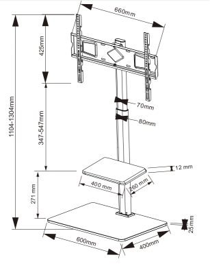 Product Overview: TV Trolley (TFS-46) is a robust, mobile TV stand designed to support a wide range of flat-screen TVs, from 32" to 75" in size. With a weight load capacity of 50kg (110 lbs), this TV trolley provides a reliable and secure solution for displaying large, heavy TVs in various environments, including offices, conference rooms or living rooms. Its adjustable features and VESA compatibility make it versatile and convenient for different screen sizes and setups.