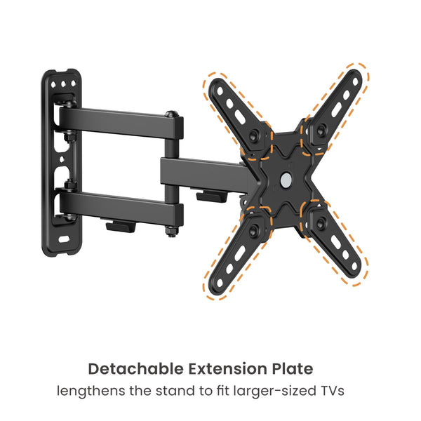 The LDA40-223 Economy Full-motion TV Wall Mount is the ultimate blend of style and functionality. With Portrait and Landscape Orientation options, the Detachable Extension Plate for larger TVs, and easy installation with the Detachable VESA Plate Design, it ensures a seamless viewing experience. Enjoy smooth adjustments, coupled with cable management for a tidy setup. Elevate home entertainment effortlessly with our Economy Full-motion TV Wall Mount.