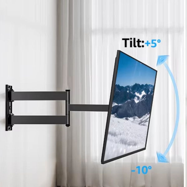 Gadget Wagon 32 to 65 inch Right Angle TV Wall Mount offers a 90-degree swivel and tilt function for optimal viewing flexibility. Designed for screens up to 65 inches with a maximum width of 145 cm, it supports a load capacity of up to 40 kg. With an adjustable distance from the wall ranging from 63 mm to 795 mm, this mount ensures your TV is perfectly positioned, even in tight spaces. The +5° to -10° tilt feature allows you to find the perfect viewing angle for enhanced comfort and visual experience, making it ideal for any room setup